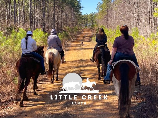 Enjoy a scenic ride through woodlands, open fields, and rolling hillsides at Little Creek Ranch. Our well‑trained horses and friendly guide will match each rider with the perfect mount for a safe, comfortable, and unforgettable ride.